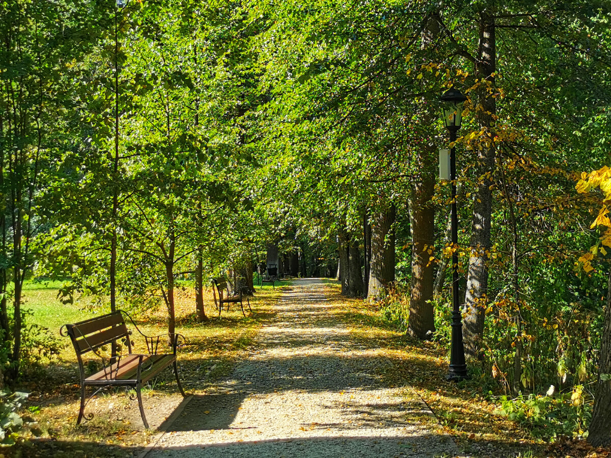 Или тенистых тропинок аллей и живописнейшего пруда, вечернее небо над которым буквально просится на холст?