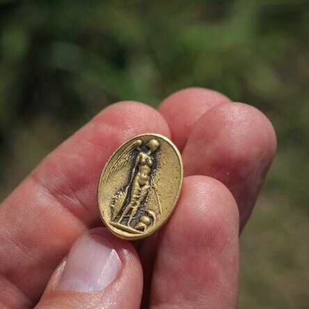 На территории средневекового селения рядом с Куликовым полем нашли отлично сохранившийся перстень XIX в. с изображением древнегреческой богини Афины Паллады.